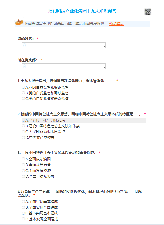 為確保此次測(cè)試活動(dòng)效果,集團(tuán)黨宣辦緊緊圍繞黨的十九大報(bào)告,精心挑選了20道考題,內(nèi)容涵蓋《中國共產(chǎn)黨章程》、習(xí)近平系列講話精神等要點(diǎn)。同時(shí),活動(dòng)采用“互聯(lián)網(wǎng)+學(xué)習(xí)”模式,即線上報(bào)名(黨員廈門黨建e家平臺(tái)報(bào)名參與),線上測(cè)試(登入考試網(wǎng)站參與在線測(cè)試),極大地提高了學(xué)習(xí)的靈活性和黨員的參與度,達(dá)到了以考促學(xué)、以考促知的目的,為推動(dòng)十九大精神在集團(tuán)落地生根打下了良好基礎(chǔ)。