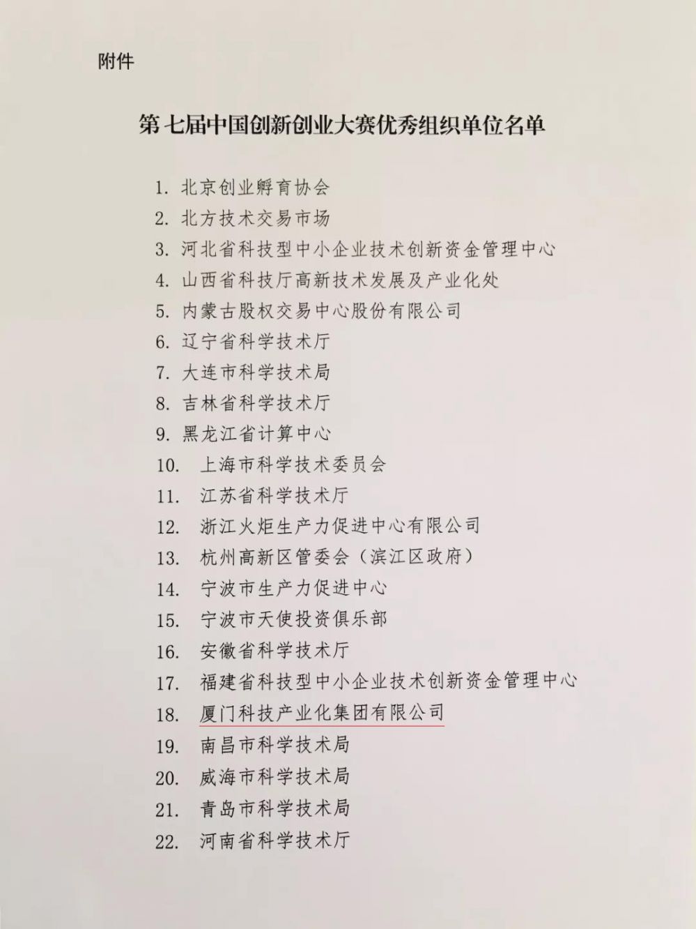 集團(tuán)榮獲第七屆中國(guó)創(chuàng)新創(chuàng)業(yè)大賽優(yōu)秀組織單位