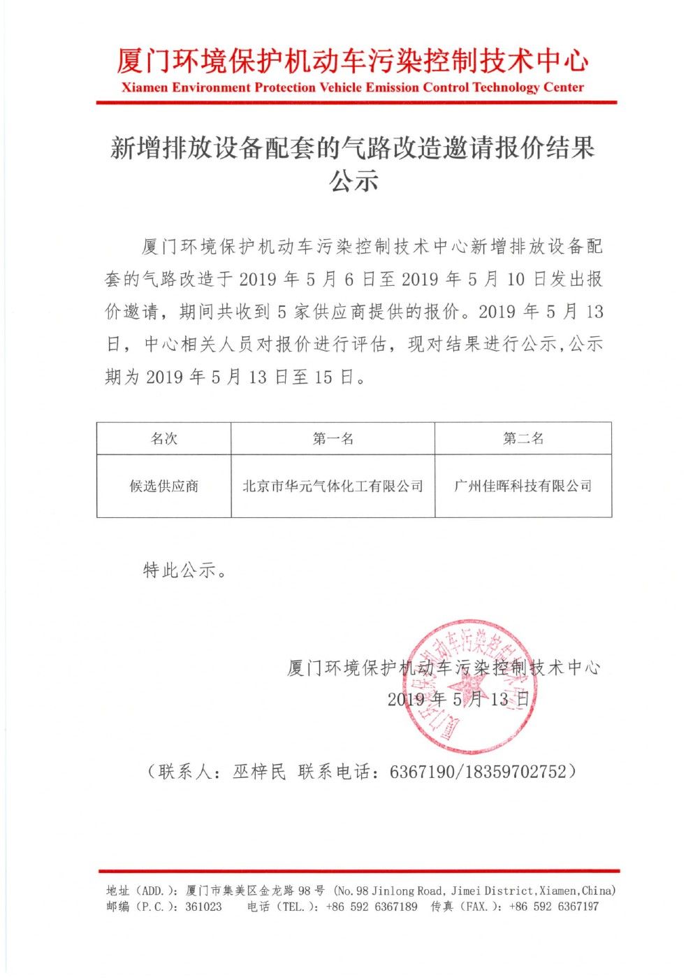 新增排放設(shè)備配套的氣路改造邀請報價結(jié)果公示