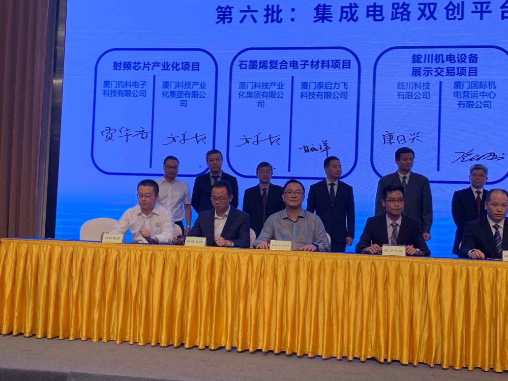 9月9日,由廈門(mén)市人民政府主辦,中國(guó)(福建)自貿(mào)試驗(yàn)區(qū)廈門(mén)片區(qū)管委會(huì)、廈門(mén)市科技局、廈門(mén)市商務(wù)局承辦,廈門(mén)市臺(tái)港澳辦、廈門(mén)市集成電路行業(yè)協(xié)會(huì)、廈門(mén)自貿(mào)區(qū)等單位協(xié)辦的2019廈門(mén)自貿(mào)片區(qū)發(fā)展機(jī)遇說(shuō)明會(huì)成功舉行。會(huì)上,科技集團(tuán)與廈門(mén)鈞科電子科技有限公司、廈門(mén)泰啟力飛科技有限公司簽署了入駐集成電路萬(wàn)翔基地合作框架協(xié)議??萍技瘓F(tuán)謝勇堅(jiān)董事長(zhǎng)作為簽約見(jiàn)證人出席,集團(tuán)常務(wù)副總方永松、鈞科電子賈華香總經(jīng)理助理、泰啟力飛甘秋洋董事長(zhǎng)作為簽約代表出席簽約活動(dòng)。