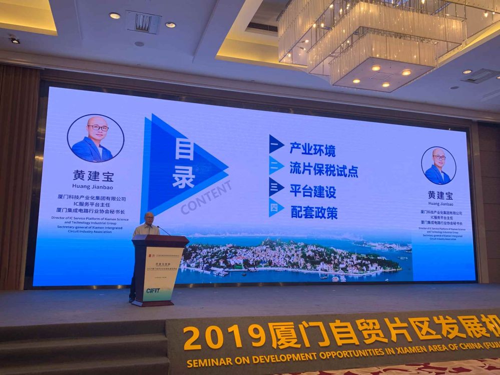 在廈門(mén)自貿(mào)片區(qū)推介環(huán)節(jié),科技集團(tuán)IC服務(wù)平臺(tái)主任黃建寶做了題為“自貿(mào)創(chuàng)‘芯’——集成電路雙創(chuàng)平臺(tái)”精彩的主題演講,從產(chǎn)業(yè)環(huán)境、流片保稅試點(diǎn)、平臺(tái)建設(shè)、配套政策等四個(gè)方面進(jìn)行推介。會(huì)后,澳大利亞籍客商專(zhuān)程與黃建寶主任交流了業(yè)務(wù)合作事宜,探討在半導(dǎo)體產(chǎn)業(yè)鏈開(kāi)展有效合作。