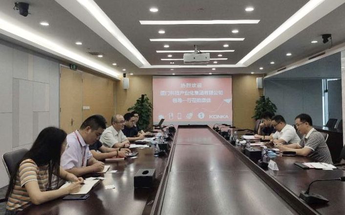 7月16-7月17日,廈門(mén)科技集團(tuán)黨總支書(shū)記、董事長(zhǎng)謝勇堅(jiān)帶隊(duì)赴深圳與康佳集團(tuán)股份有限公司商洽合作事宜。