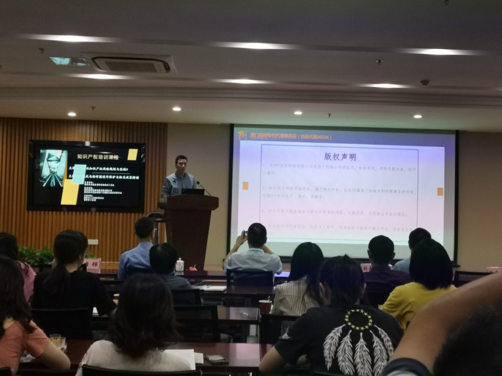 為扎實推進知識產權的建設工作,充分發(fā)揮知識產權制度對企業(yè)創(chuàng)新發(fā)展的引領作用,10月16日,由湖里區(qū)市場監(jiān)督管理局維權工作站主辦,廈門科湖集成電路發(fā)展有限公司、園區(qū)綜合服務管理中心承辦的知識產權規(guī)劃培訓會成功舉辦,湖里區(qū)市場監(jiān)督局調研員張嘉進致開幕詞。
