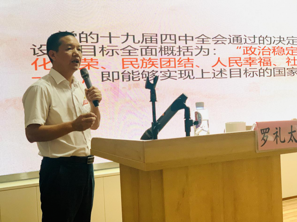 本次活動(dòng)邀請(qǐng)廈門(mén)大學(xué)馬克思主義學(xué)院羅禮太教授進(jìn)行授課。講座中羅教授將習(xí)近平新時(shí)代中國(guó)特色社會(huì)主義思想從形成背景、主要特色、歷史貢獻(xiàn)、理論定位、學(xué)習(xí)貫徹等問(wèn)題進(jìn)行了比較系統(tǒng)的解讀。該講座進(jìn)一步為黨員干部學(xué)習(xí)習(xí)近平新時(shí)代中國(guó)特色社會(huì)主義思想提供了經(jīng)驗(yàn)探索和理論素材。