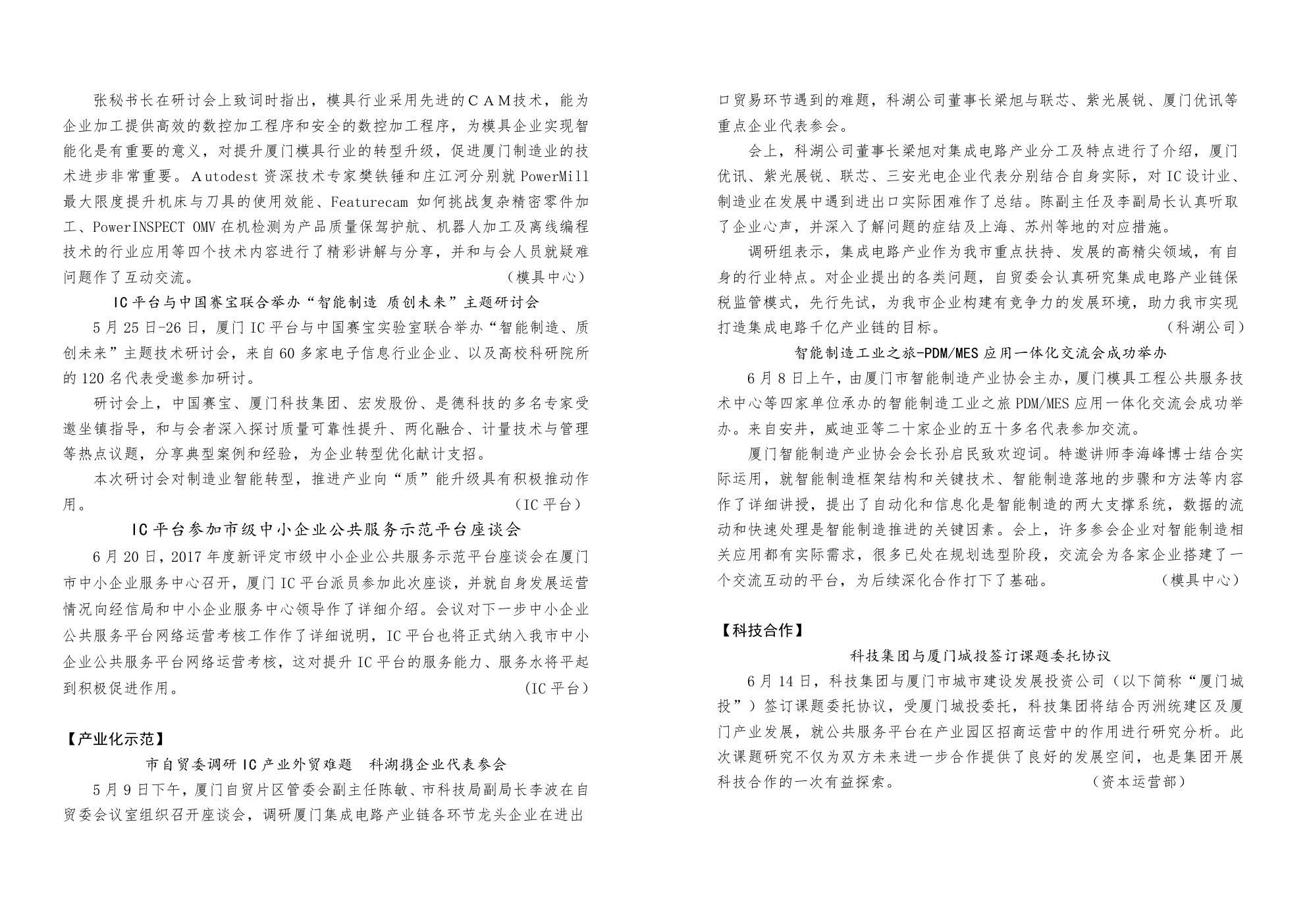 產(chǎn)業(yè)化公司工作簡(jiǎn)報(bào)第5期(總第15期) 欄目:集團(tuán)資訊 來(lái)源:廈門(mén)科技產(chǎn)業(yè)化集團(tuán) 時(shí)間:2017-09-28 熱度:167