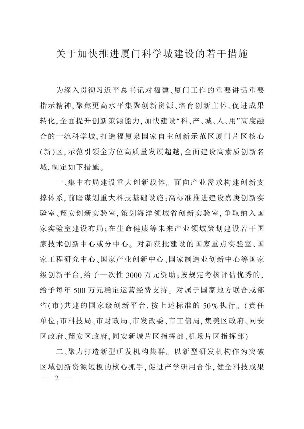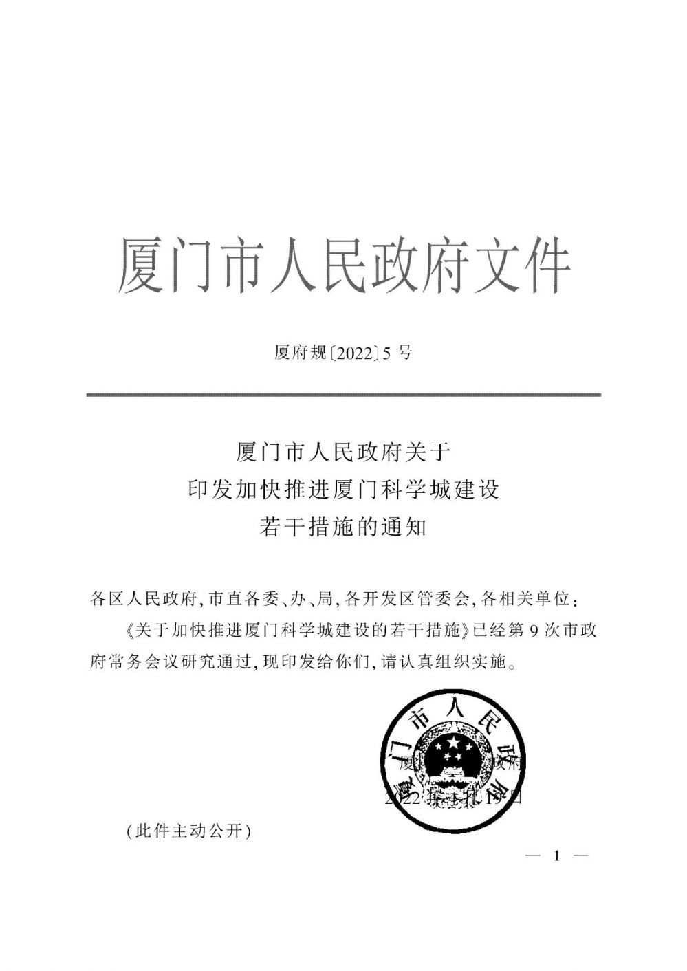 轉(zhuǎn)發(fā)《關(guān)于加快推進(jìn)廈門科學(xué)城建設(shè)的若干措施》 欄目:科技政策 來源:廈門科技產(chǎn)業(yè)化集團(tuán) 時(shí)間:2022-04-28 熱度:814