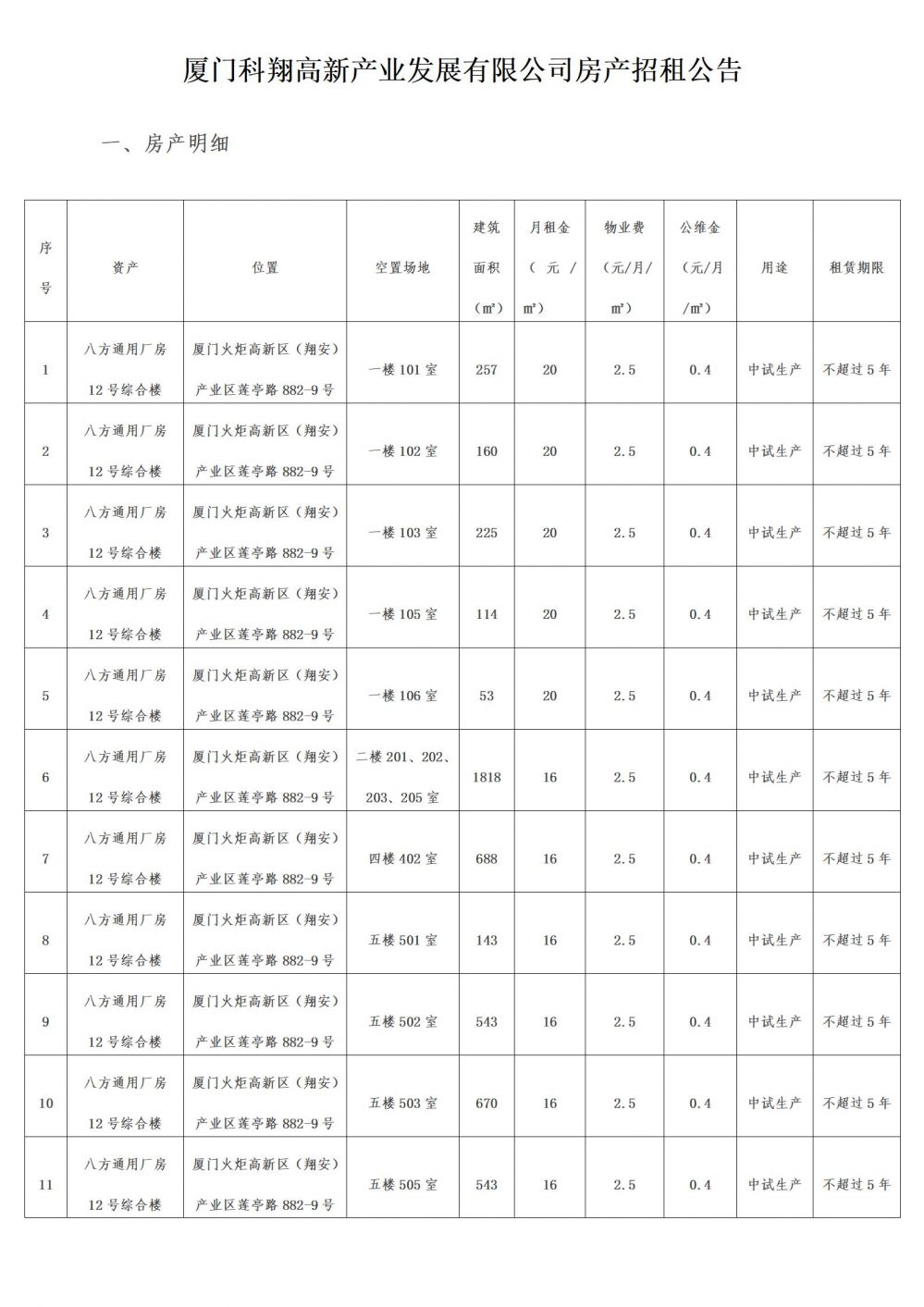 廈門科翔高新產(chǎn)業(yè)發(fā)展有限公司房產(chǎn)招租公告 欄目:通知公告 來源:廈門科技產(chǎn)業(yè)化集團(tuán) 時(shí)間:2023-06-13 熱度:221