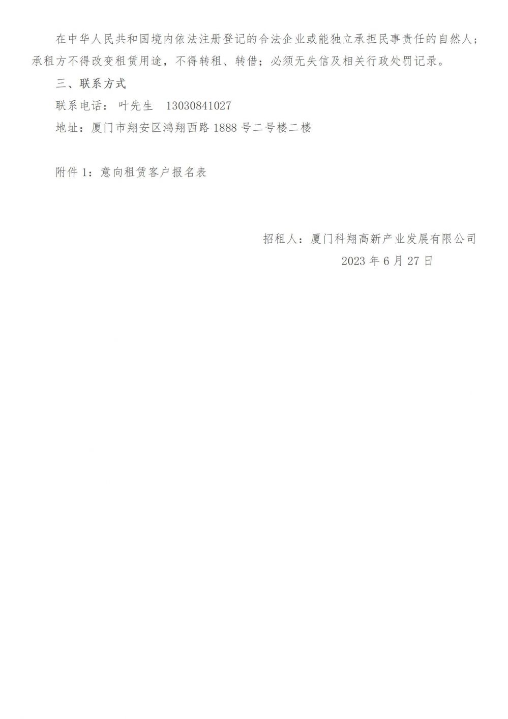 廈門科翔高新產(chǎn)業(yè)發(fā)展有限公司房產(chǎn)招租公告 欄目:通知公告 來源:廈門科技產(chǎn)業(yè)化集團 時間:2023-06-28 熱度:206 廈門科翔高新產(chǎn)業(yè)發(fā)展有限公司房產(chǎn)招租公告2023.6.27.docx