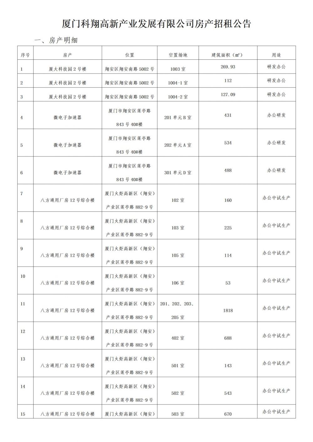 廈門科翔高新產業(yè)發(fā)展有限公司房產招租公告