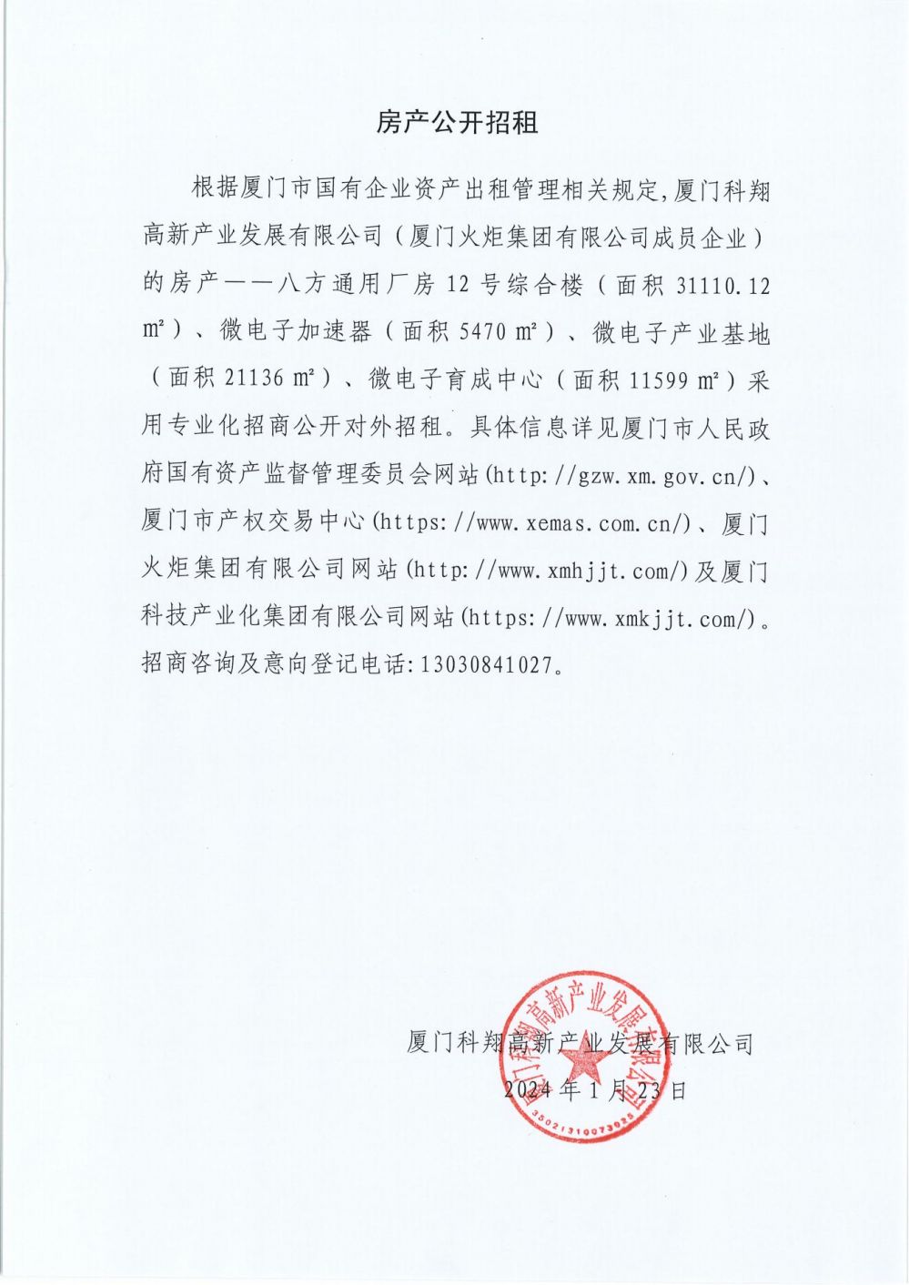 廈門科湖科技園區(qū)發(fā)展有限公司房產(chǎn)招租公告